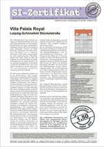 Das SI-Zertifikat Hier erhalten Sie die kostenlose Kurzversion des SI-Zertifikats als pdf-Datei zum Download. Die Langversion mit ausführlichen Informationen, Grundrissen, Serviceleistungen und Bauträgerinterview können Sie im Anschluss bestellen. Langversion des SI-Zertifikat bestellen